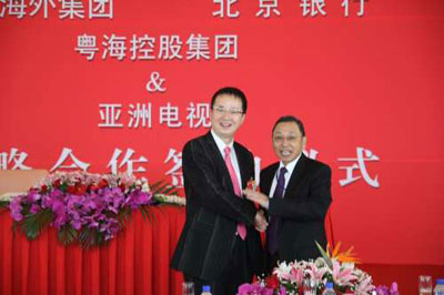 簽署儀式11日早在北京飯店舉行,由亞視行政總裁胡競(jìng)英跟中國(guó)人壽、招商銀行、中國(guó)海外集團(tuán)、北京銀行、粵?毓杉瘓F(tuán)五間企業(yè)的高層簽署戰(zhàn)略合作協(xié)議。查懋聲、多位亞視高層、過百名政商界人士出席,場(chǎng)面熱鬧。王征以主持身份逐一介紹嘉賓,并由查懋聲首先致詞。