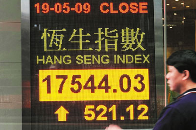 恒指大升,主要由匯控及中移動(dòng)帶動(dòng),匯控及東亞成為首批獲許在港發(fā)行人民幣債券,刺激匯控及東亞急升逾6%,前者為恒指帶來逾200點(diǎn)升幅,加上中移動(dòng)擬盡快回內(nèi)地發(fā)CDR,令該股再升2%,也為恒指帶來41點(diǎn)升幅。