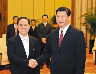中新網9月30日電 據香港《文匯報》報道,主管港澳事務的中共中央政治局常委、國家副主席習近平29日下午在見證大亞灣核電站延長合營期簽署儀式前,與香港特首曾蔭權短暫會晤。