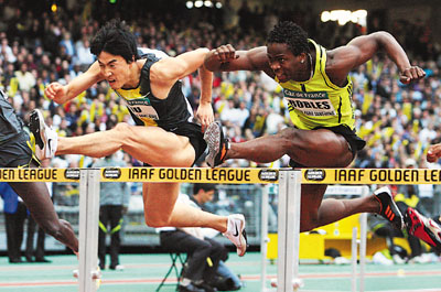 “只要他(羅伯斯)養(yǎng)好傷,(最大對(duì)手)肯定還是他。巴巴多斯那個(gè)……(柏林世錦賽冠軍布拉斯懷特,不過劉翔叫不上來他的名字),跑13秒零幾沒問題,但是跑進(jìn)13秒估計(jì)有難度。我還是看好羅伯斯!边@一點(diǎn),劉翔師徒非常一致,孫海平教練也表示:“羅伯斯的問題不大,之前他的傷不太嚴(yán)重,主要是擺動(dòng)腿的力度,過欄那一下,他的問題不是很大,跟劉翔沒法比,養(yǎng)一段就好了!