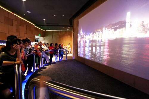 步入展覽廳,觀眾便置身于360度弧形屏幕,觀看一條長2分鐘主題為“香港多面體”的短片,影片藉多元的聲音和視覺效果,帶出不同層次生活的對比,如城市與自然,傳統(tǒng)與現(xiàn)代,中西文化,發(fā)展與保育等。同時,場內(nèi)有十四個直立LED顯示屏聯(lián)動播放,營造出動感和引人入勝的視覺體驗。觀賞影片時,還可和地面上特制的磚塊互動,互動地磚可感應(yīng)觀眾的移動,并配合短片的色調(diào),亮起不同的顏色方塊做出回應(yīng)。
