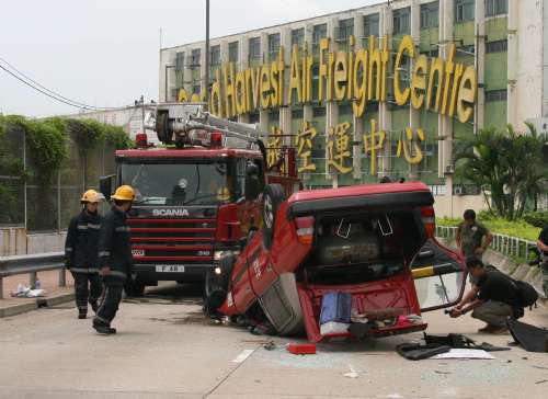 中新網(wǎng)6月22日電 據(jù)香港《大公報》報道,香港九龍城21日上午發(fā)生出租車翻車意外,肇事司機駛至宋王臺時,報稱閃避流浪狗而失控撞向路旁石壆,反彈出路面時四輪朝天。