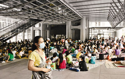 12日中環(huán)皇后像廣場(chǎng)跟往常的周日一樣坐滿外傭,不過菲律賓傭工組織主席Rima Cunanan指出,近期不少會(huì)員反映,雇主禁止她們外出聚會(huì),批評(píng)做法不合理。有外傭中介公司表示,倘若雇主不放心,可安排外傭抵港后,先到中介公司的宿舍隔離數(shù)天。