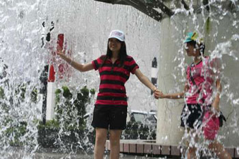 有本來想去星光大道的游客因?yàn)樘鞖鉄幔顼埡蟛蝗ビ瓮,索性跑去吃雪糕吹冷氣,但由于麥?dāng)勞爆滿,只好站在靠門口的地方享受漏出的清涼。公園大樹下坐滿了公公婆婆,坐著不動還是滿身汗,人手一把扇都抗不過熱浪。大大小小的商場擠滿了人,無論買不買東西,吹了冷氣再說。
