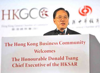 談及香港和內地的關系,曾蔭權表示,在過去的30年中,香港在國家經(jīng)濟發(fā)展進程中扮演相當重要的角色,同時也從中受惠。在“一國兩制”之下,香港地位獨特,他呼吁商界支持施政報告提出的計劃,以改善香港的生活水平和經(jīng)濟結構,把握機遇、創(chuàng)造就業(yè)機會等。“施政報告所提出的措施都是為了讓香港變成一個更適合居住和生活的城市,我期望在接下來的3至5年內,能看到成果。”