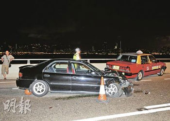 逾20輛經(jīng)改裝的私家車,13日凌晨在被視為香港熱門非法賽車“跑道”之一的觀塘繞道,以160公里時(shí)速狂飆。警方接報(bào)趕至,并事先在繞道上截停5輛普通市民的車輛,作為堵截非法賽車的路障。未幾,10多輛跑車陸續(xù)高速馳駛沖過防線,另有最少3車實(shí)時(shí)掉頭逆線逃去,而5輛被充作“人肉路障”的汽車頓成犧牲品全被撞毀。有挨撞的士司機(jī)不滿警方做法,即場(chǎng)指斥“沒有理由要我們充當(dāng)‘人肉沙包’!”。