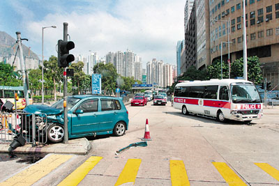 此時剛有一輛屬于警察機動部隊的24座位未載客中型巴士擬駛往輔警總部,巴士沿啟祥道西行駛至交界處,車長不防有私家車右轉而至,兩車俱收剎不及在交界處互撼。