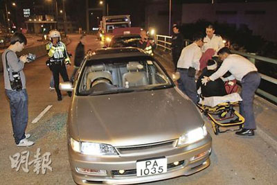 中新網(wǎng)1月22日電 據(jù)香港《明報(bào)》報(bào)道,香港三名猖狂惡煞,21日凌晨在灣仔行車(chē)天橋上高速飛車(chē)將仇家所駕私家車(chē)強(qiáng)行截停,用鐵錘敲爆車(chē)窗,遇襲司機(jī)慌亂倒車(chē)欲逃,卻撞及尾隨的士,無(wú)路可退下慘遭撲穿頭,血流滿(mǎn)面,車(chē)內(nèi)一個(gè)放有現(xiàn)金的手袋也被搶去,惡煞逃去無(wú)蹤。