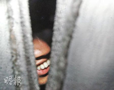 此時(shí),探員在陳宅內(nèi)調(diào)查已近3小時(shí),6時(shí)40分,陳振聰被捕帶返警署。一輛沖鋒車率先駛出大閘開路,尾隨一輛深藍(lán)色警方客貨車,只見車身兩邊與后車窗俱掛上布簾,傳媒包圍爭(zhēng)攝車內(nèi)情況,黑暗的車廂內(nèi)乍現(xiàn)一排潔白的牙齒,正是陳振聰?shù)恼信啤八娜f(wàn)”笑容。