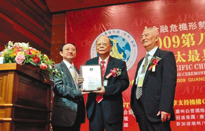 中新網(wǎng)8月4日電 據(jù)香港《文匯報(bào)》報(bào)道,原全國人大常委、香港金利來集團(tuán)董事局主席曾憲梓,日前出席2009第八屆亞太華商領(lǐng)袖論壇暨亞太最具社會(huì)責(zé)任感華商領(lǐng)袖頒獎(jiǎng)盛典,并獲大會(huì)頒發(fā)最具責(zé)任感華商領(lǐng)袖大獎(jiǎng)。