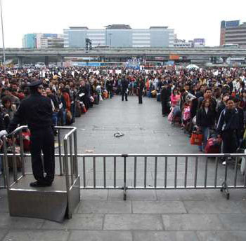 今年春運(yùn)較去年提前,特別是內(nèi)地施行新休假制度后,“五一”取消長假,赴港游客流提前涌現(xiàn)在春運(yùn)期間。廣東省公安出入境部門人士預(yù)計,2008年春節(jié)前夕及期間經(jīng)深圳赴港個人游及團(tuán)隊(duì)旅客,可望同比去年增長20%倒30%,而北上的香港人同比也將有10%多的增長。因此,今年春運(yùn)期間,港澳出入境流連同旅游探親流、放假學(xué)生流、節(jié)日商務(wù)流及外來務(wù)工流匯合,凸現(xiàn)客流高度、高峰、時段“三大集中”,廣深、廣九線疏運(yùn)難度加大。
