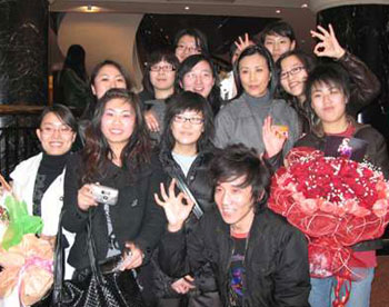9日下午,汪明荃在北京貴賓樓出席政協(xié)小組討論會時,10多個來自北京和天津的年輕影迷在會議室的門外守候著。當(dāng)汪明荃步出會議室后,一眾影迷一涌而上,又送花又索取簽名又要求合照。汪明荃一一滿足影迷的要求,令所有影迷欣喜若狂。