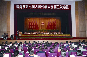 圖:珠海七屆人大三次會(huì)議25日開(kāi)幕。(圖片來(lái)源:澳門日?qǐng)?bào))