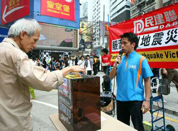 多個政黨、團體和商業(yè)機構(gòu)均以不同方式參與賑災行動,包括街頭和商場義賣、獻唱、大球場義賽等,市民紛紛慷慨解囊,祈求為災民獻出一分力。