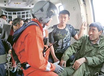 中新網(wǎng)6月2日電 據(jù)香港明報(bào)報(bào)道,香港飛行服務(wù)隊(duì)于四川綿竹高原山區(qū),在超級(jí)美洲豹直升機(jī)用盡最后一滴汽油之前,驚險(xiǎn)地將2名迄今被困最久(19日)的礦工,以及6名解放軍空降兵救起!拔覀兘德錂C(jī)場(chǎng)時(shí),汽油剛剛用完,拯救時(shí)間每拖延一分鐘,便多一分危險(xiǎn)!”港府飛行服務(wù)隊(duì)高級(jí)機(jī)師鄧東成說(shuō)。