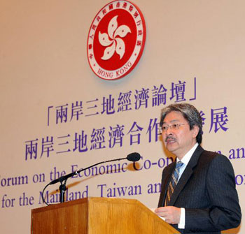 中新網(wǎng)10月29日電 據(jù)香港特區(qū)政府網(wǎng)站消息,香港財(cái)政司司長曾俊華29日出席香港特別行政區(qū)政府主辦的“兩岸三地經(jīng)濟(jì)合作與發(fā)展”論壇,并呼吁港人無需擔(dān)心“三通”,因?yàn)檫@將為兩岸三地的經(jīng)濟(jì)注入新的活力,帶來新的機(jī)遇。
