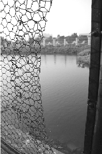 鴨涌河圍網(wǎng)破洞可容成年人順利穿過。(圖片來源:澳門日?qǐng)?bào))