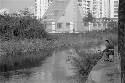 有居民由被破壞圍網(wǎng)進(jìn)入鴨涌河邊垂釣。(圖片來源:澳門日?qǐng)?bào))