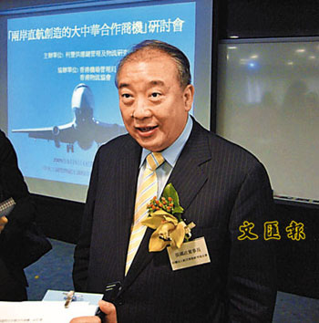 張國(guó)政指,目前每星期只有逾百班兩岸直航機(jī),對(duì)香港的影響不大,但如果航班陸續(xù)增加及可以實(shí)行客倉(cāng)帶貨,則會(huì)對(duì)香港的航運(yùn)就造成一定影響。
