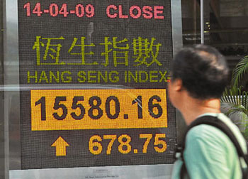 中新網(wǎng)4月15日電 據(jù)香港《文匯報》報道,外圍在復(fù)活節(jié)長假期間,股市持續(xù)向好,令港股14日要追回有關(guān)升幅,恒指高開401點后追貨買盤支撐大市,一眾當炒股份向上,全日收報15580點,升678.7點,升幅達4.5%,是今年1月7日港股跌穿15000點后,4個月以來首次重上15000點收市,且成交續(xù)增至754.21億元。