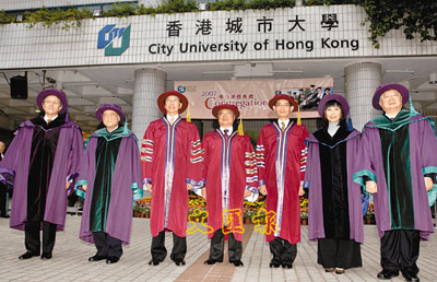 中新網11月9日電 香港城市大學昨(8日)舉行07年學位頒授典禮,向10,001名畢業(yè)生頒授學位,并同時向4名社會杰出人士頒授榮譽博士學位,包括長江制衣有限公司創(chuàng)辦人兼主席陳瑞球、香港合和實業(yè)有限公司主席胡應湘、著名藝人汪明荃及諾貝爾獎得主Claude Cohen-Tannoudji。