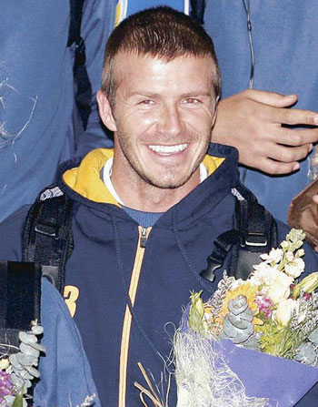 6日在機(jī)場(chǎng)及酒店僅有數(shù)十名球迷守候“萬人迷”,撇除湊熱鬧的路人,數(shù)目較到場(chǎng)采訪的傳媒及保安還少。見慣大場(chǎng)面的貝克漢姆剛出通道便面露招牌笑容,但刻意低調(diào)的他僅在大堂逗留約5分鐘便離開,但他輕輕揮手已吸引女球迷大叫,令隊(duì)友及教練淪為陪襯。至于貝克漢姆妻子維多利亞及兒子則未見隨行。