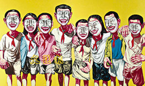 該畫作是曾梵志1996年的作品,當時他剛結婚及搬往北京,畫中人物雖戴著面具,卻流露歡愉情緒,與曾梵志其它面具系列作品表現(xiàn)的憂傷大不相同。拍賣會上成交額名列第二的是岳敏君的《轟轟》,以5409萬港元成交,該畫創(chuàng)作于1993年,是岳敏君代表作之一。
