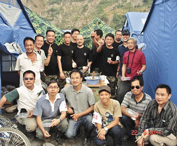 到晚上,18個(gè)人擠在兩個(gè)帳篷內(nèi)睡覺。莫昭友更不敢多喝水,擔(dān)心半夜要起身如廁,一來怕黑,二來怕吵醒其它隊(duì)員。至于吃的,他說帶往災(zāi)區(qū)的食物很少,幾乎三餐是吃面包、罐頭等干糧,“災(zāi)區(qū)的環(huán)境真的很難適應(yīng)。”幸而當(dāng)?shù)鼐仍藛T得知他們只吃干糧,晚上煮粥給他們吃。