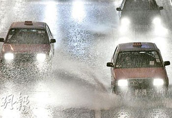 近日天氣不穩(wěn),3日傍晚香港普遍地區(qū)下大雨,天文臺(tái)發(fā)出一個(gè)多小時(shí)黃色暴雨警告,灣仔告士打道一帶變成澤國,但暴雨來得快、去得快,渠務(wù)署沒有接到水浸報(bào)告。(圖片來源:明報(bào))