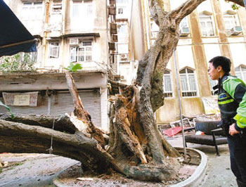 赤柱大街百年刺桐裂開倒塌,致壓死少女。(圖片來源:文匯報(bào))