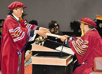 中新網(wǎng)11月12日電 據(jù)香港《文匯報(bào)》報(bào)道,香港城市大學(xué)11日舉行2008年畢業(yè)禮以及新任校長郭位就職典禮,由城大校監(jiān)、行政長官曾蔭權(quán)主持。