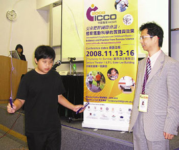 面對兒童肥胖的問題,許世全建議增加運(yùn)動量,減少進(jìn)食快餐和零食控制體重。他建議,以跳繩運(yùn)動控制體重較具有彈性,并適合不同的環(huán)境進(jìn)行。他并指,近年流行的“打Wii”互動游戲,也有助消耗體內(nèi)卡路里。中二的李同學(xué)去年以跳繩控制體重,一年內(nèi)從140磅減至130磅,體能并且改善。