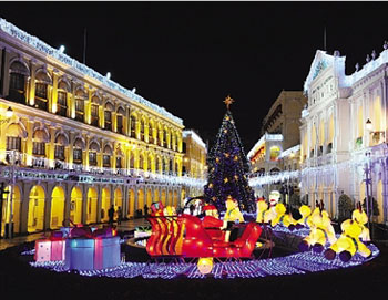 澳門市面充滿歡樂浪漫的圣誕氣氛。(圖片來源:澳門日報)