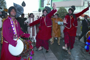 圖:傳統(tǒng)舞蹈及鼓樂增添婚禮熱鬧氣氛。(圖片來源:澳門日報)