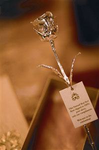 圖:蘸上純銀的鮮花玫瑰回贈(zèng)嘉賓。(圖片來(lái)源:澳門(mén)日?qǐng)?bào))