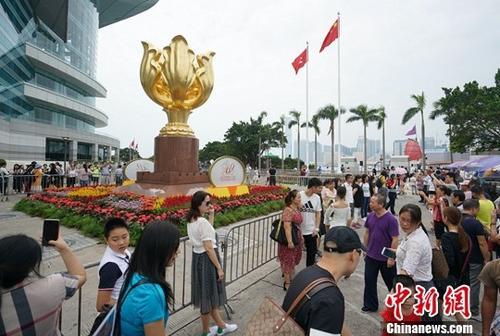 1997年7月1日,中華人民共和國香港特別行政區(qū)正式成立,當(dāng)天早上8:30,前國家主席江澤民及前特區(qū)行政長官董建華,聯(lián)同特區(qū)主要官員、嘉賓和市民,在金紫荊廣場參與國旗區(qū)旗升旗儀式。自此,國旗及區(qū)旗每日早上8:00升起,傍晚6:00降下,吸引不少旅客和市民觀看。