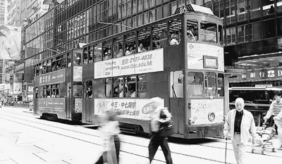 如果把巴士比作高大氣派、行動敏捷的年輕人,電車就是一位衣著寒酸、步履蹣跚的老者。港府為何要保留這個老古董呢?答案是:一、充滿懷舊色彩的“叮當(dāng)車”已經(jīng)成為香港一景,是香港特色的一部分。二、車費(fèi)相對便宜,是低收入階層的至愛。三就是出于環(huán)保的考慮了。