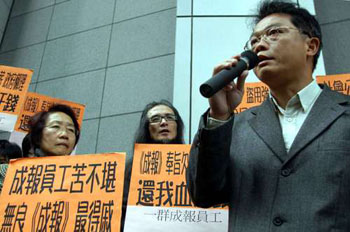 中新網(wǎng)1月23日電 香港《成報》決定就一批前員工日前在申訴大會的言論及指控,采取法律追究行動,認(rèn)為有關(guān)言論構(gòu)成誹謗,影響商譽(yù)。大約三十名《成報》前員工22日到警察總部拉橫額抗議并報案,要求警方商業(yè)罪案調(diào)查科調(diào)查《成報》欠薪事件。