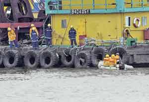 捉狗隊(duì)員見事敗,即向消防處求助,大批消防員趕到場,而愛護(hù)動(dòng)物協(xié)會(huì)亦有派員趕到。由于跳海逃走的唐狗游出離岸300多公尺遠(yuǎn)的躉船,消防安排船只到場接載捉狗隊(duì)出海,再轉(zhuǎn)乘橡皮艇接近躉船船身,擾攘個(gè)多小時(shí),雖然唐狗曾再度跳海,但被捉狗隊(duì)員的捉狗索套緊頸項(xiàng)就逮,之后將其納入狗籠,乘船上岸,帶返九龍動(dòng)物管理中心接受檢驗(yàn)。