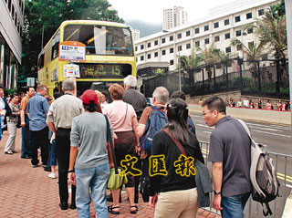 香港山頂纜車服務暫停,大批游客須改乘巴士上山頂。(圖片來源:文匯報)