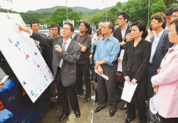 立法會共有7名議員到發(fā)生大車禍的事故地點考察,聽取路政署官員和警方交通部介紹事發(fā)路面的交通安全安排。