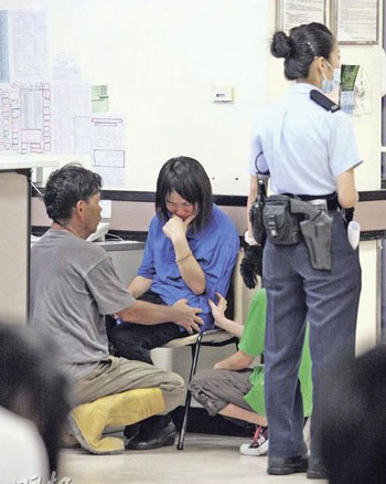 少女上吊自殺,母親(藍(lán)衣)傷心欲絕,父親蹲身安慰。(圖片來源:明報(bào))