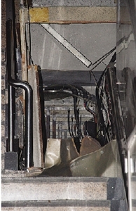 澳門金來(lái)大廈梯間電箱的不銹鋼門被炸飛。(圖片來(lái)源:澳門日?qǐng)?bào))