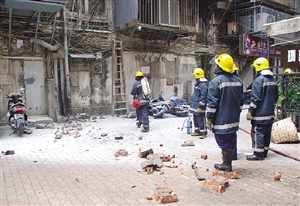 有商號(hào)以為金來(lái)大廈梯間電箱爆炸,立即報(bào)警求助。消防搶救車、水泵車和救護(hù)車接報(bào)到場(chǎng)調(diào)查,在現(xiàn)場(chǎng)拉起圍帶,封鎖懷疑爆炸的兩個(gè)地點(diǎn)一帶,避免行人走近。