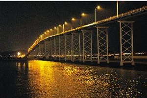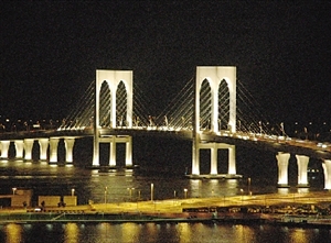 西灣大橋橋躉射燈未被盜去前,燈火通明。(圖片來(lái)源:澳門(mén)日?qǐng)?bào))