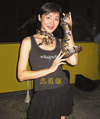 萬綺雯與蟒蛇共舞,并無花假。(圖片來源:文匯報)