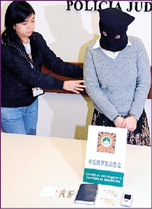 涉嫌“自導(dǎo)自演”禁錮勒索案女子被司警拘捕。(圖片來源:澳門日?qǐng)?bào))