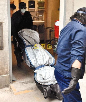 葵涌曉葵樓懷疑畏罪自殺的老翁由仵工送往殮房。(圖片來(lái)源:文匯報(bào))