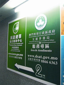 圖:中華廣場梯間設(shè)交通局服務(wù)指示牌。(圖片來源:澳門日報)
