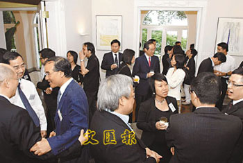中新網(wǎng)6月6日電 據(jù)香港大公報(bào)報(bào)道,除了食物及衛(wèi)生局副局長梁卓偉因事不在香港外,港府其余7名副局長及9名政治助理5日在政務(wù)司司長唐英年的帶領(lǐng)下,在政務(wù)司司長官邸會(huì)見傳媒代表,是有關(guān)名單公布以來首次集體亮相。